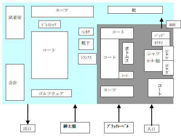 最後に記憶頼りのエリア図 婦人服は分かりません。 紳士服もうろ覚えです。