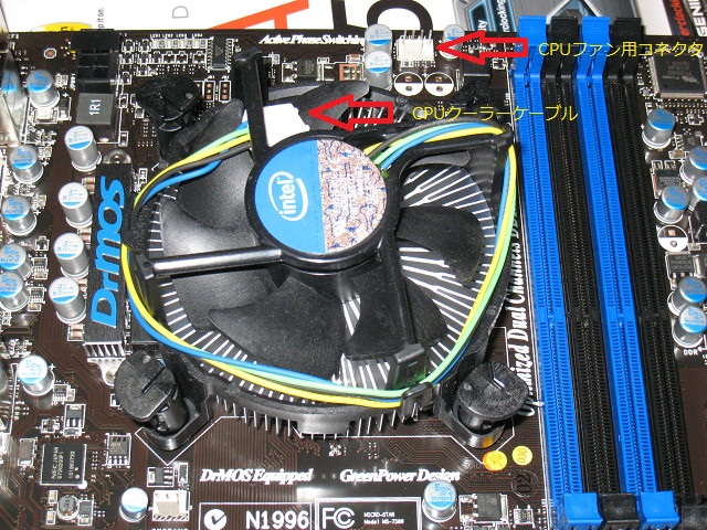 あとはケーブルをCPUファンコネクタに接続しておきます。